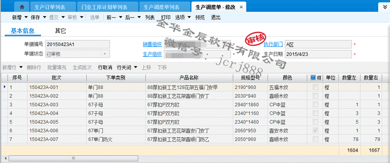 4、 生產(chǎn)調(diào)度,系統(tǒng)下單,下單尺寸自動(dòng)分解、采購(gòu)物料自動(dòng)分解。