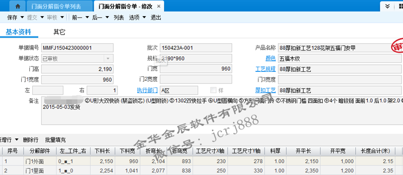 金辰門(mén)業(yè)ERP專(zhuān)版